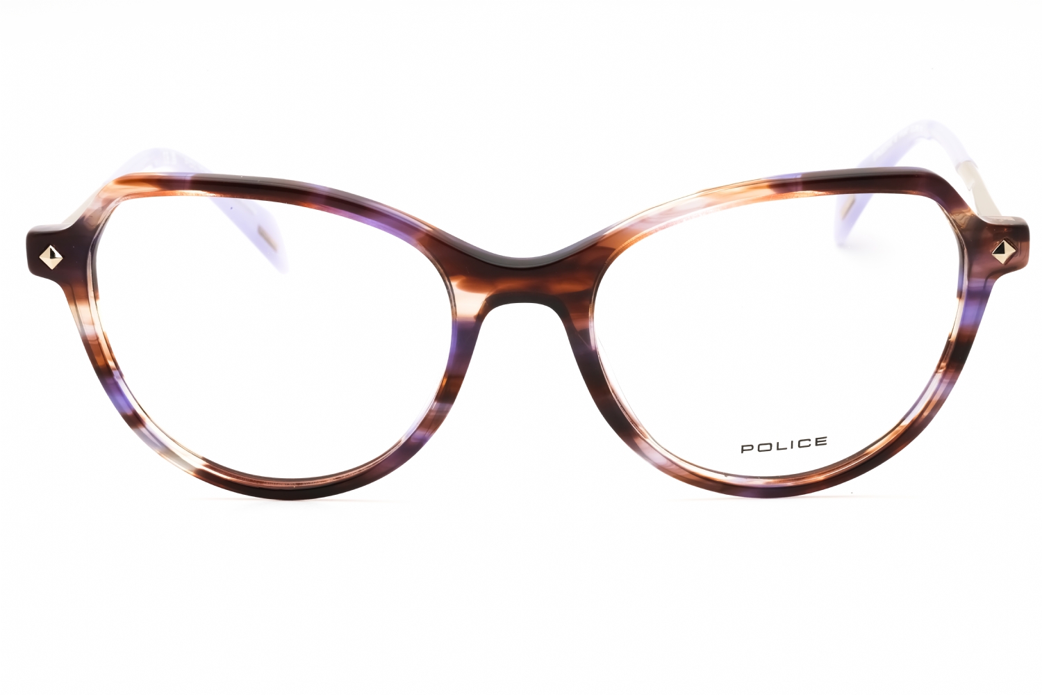 - Color: PURPLE STREAKED BROWN/clear demo lens